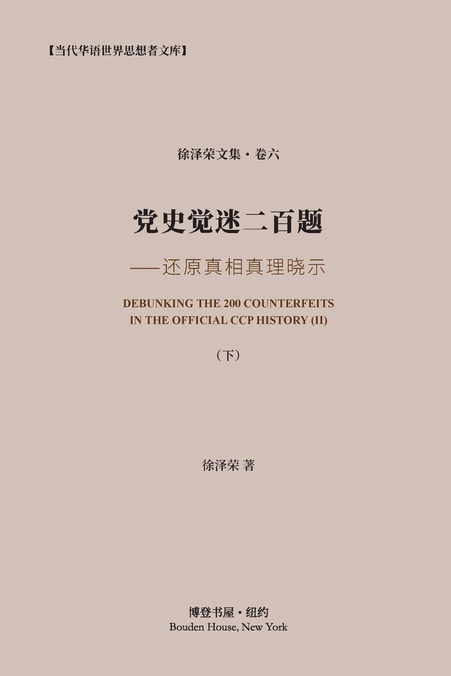 《党史觉迷二百题》下册还原的是中共放收泰国一国共产党(in particular)、南洋各国共产党(in general)旨在夺取政权内战的真相,譬如:农村包围城市并非万应灵药、邓领导层淡出暴力革命原则、社会主义仍然通向资本主义。下册还破天荒地证伪了海峡两岸一度共同奉为圭臬的"三阶段五四观";其"散论篇"则着重谈到了冯桂芬 "比而齐之,齐而上之"预测沦于落空的倾向,以及力挽创新失败、民 主失败狂澜的办法:中美合邦;华洋混种。希望当代中国出现一位拥抱万邦的魏孝文帝2.0,令到炎黄华胄免于亡种。